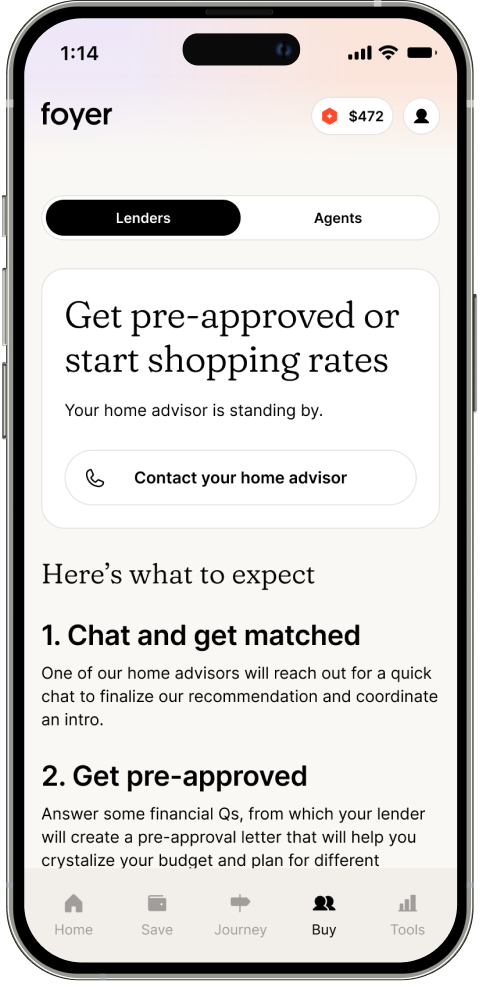 Foyer helps first-time homebuyers prepare for the biggest transaction of their lives with confidence.